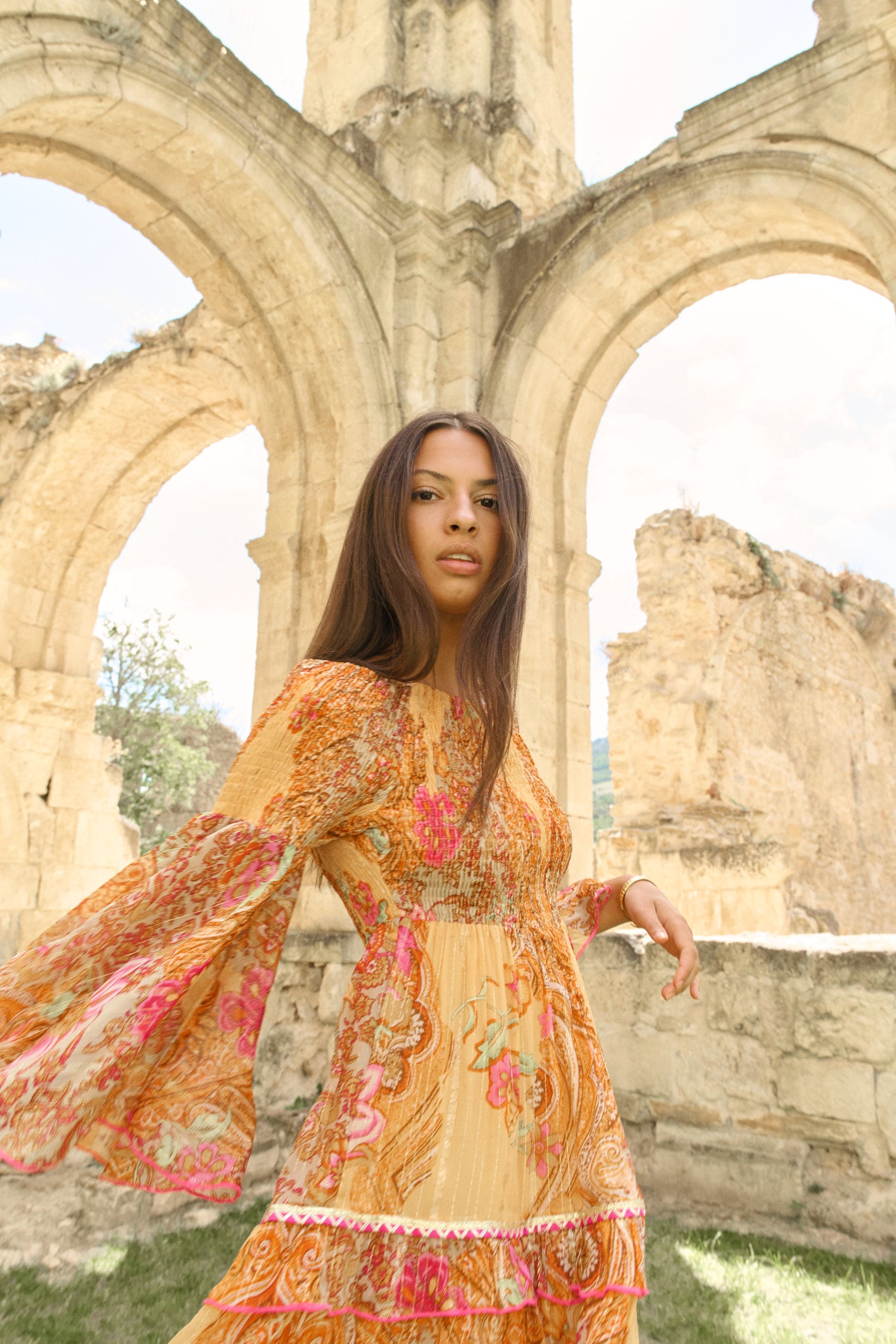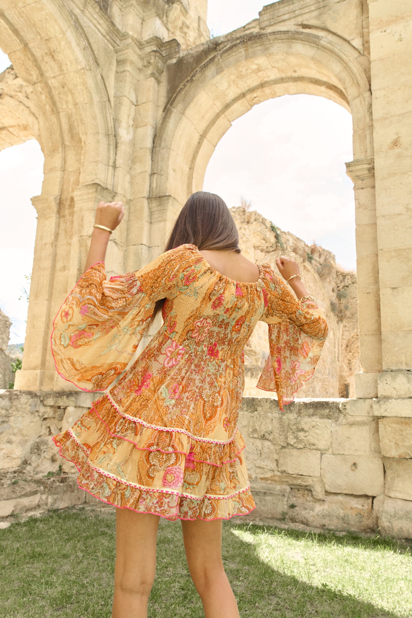 ORANGE CAPRI DRESS WITH MOCKING