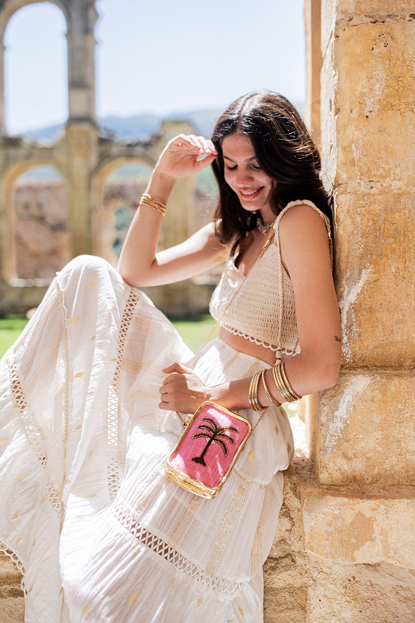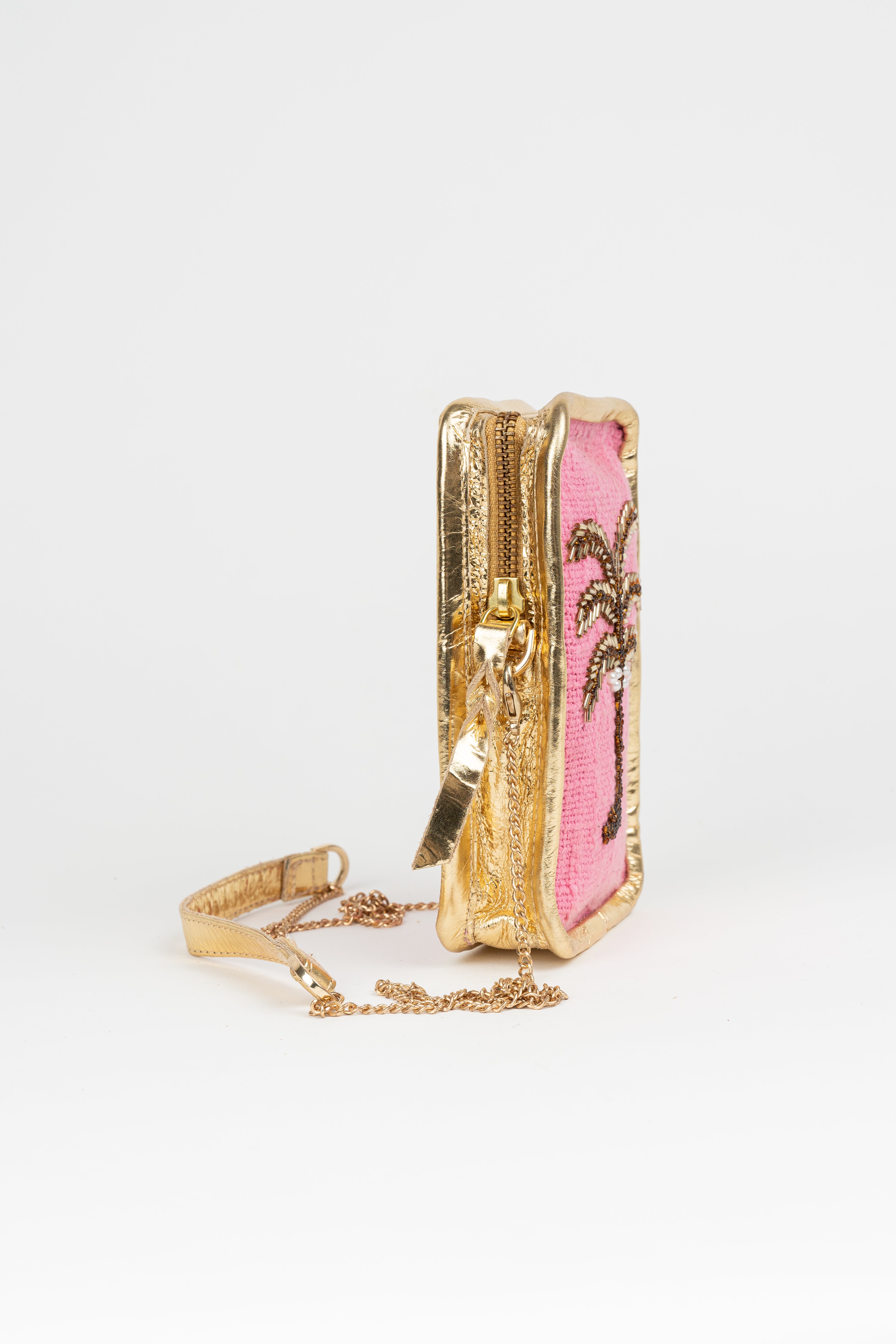 Este bolso bandolera pequeño en un vibrante color rosa es una opción perfecta para la temporada. Este bolso bandolera pequeño en un vibrante color rosa es una opción perfecta para la temporada. Presenta una palmera bordada en abalorios que añade un toque tropical y divertido al diseño. El reborde, hecho de piel en color dorado, le proporciona un acabado elegante y lujoso. La correa de cadena incluye un detalle en piel, lo que permite llevarlo colgado o cruzado con facilidad y comodidad. Perfecto para llevar el móvil y lo esencial. Este bolso es ideal para complementar un look desenfadado y lleno de personalidad. Presenta una palmera bordada en abalorios que añade un toque tropical y divertido al diseño. La correa de cadena incluye un detalle en piel, lo que permite llevarlo colgado o cruzado con facilidad y comodidad. Perfecto para llevar el móvil y lo esencial. Este bolso es ideal para complementar un look desenfadado y lleno de personalidad.