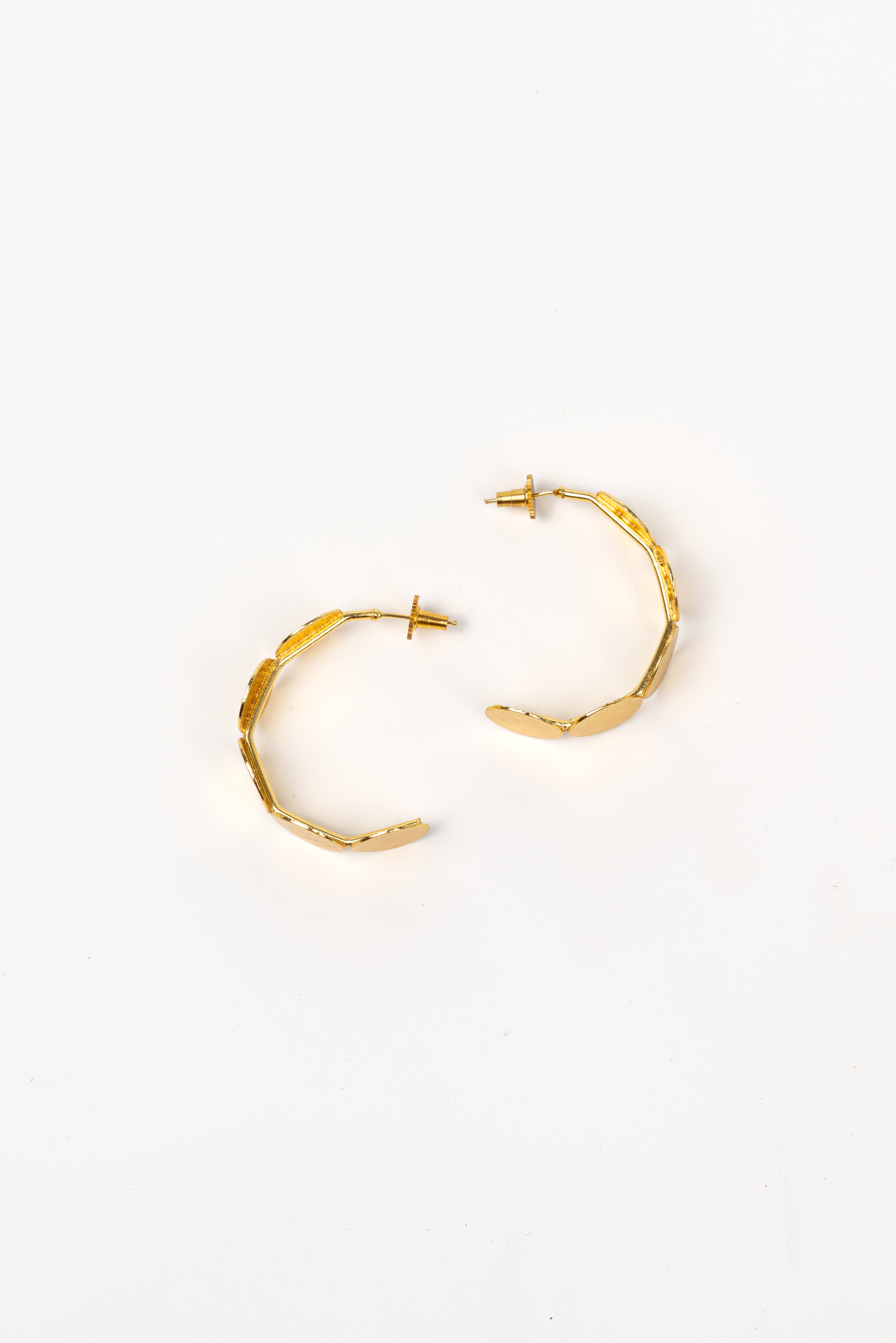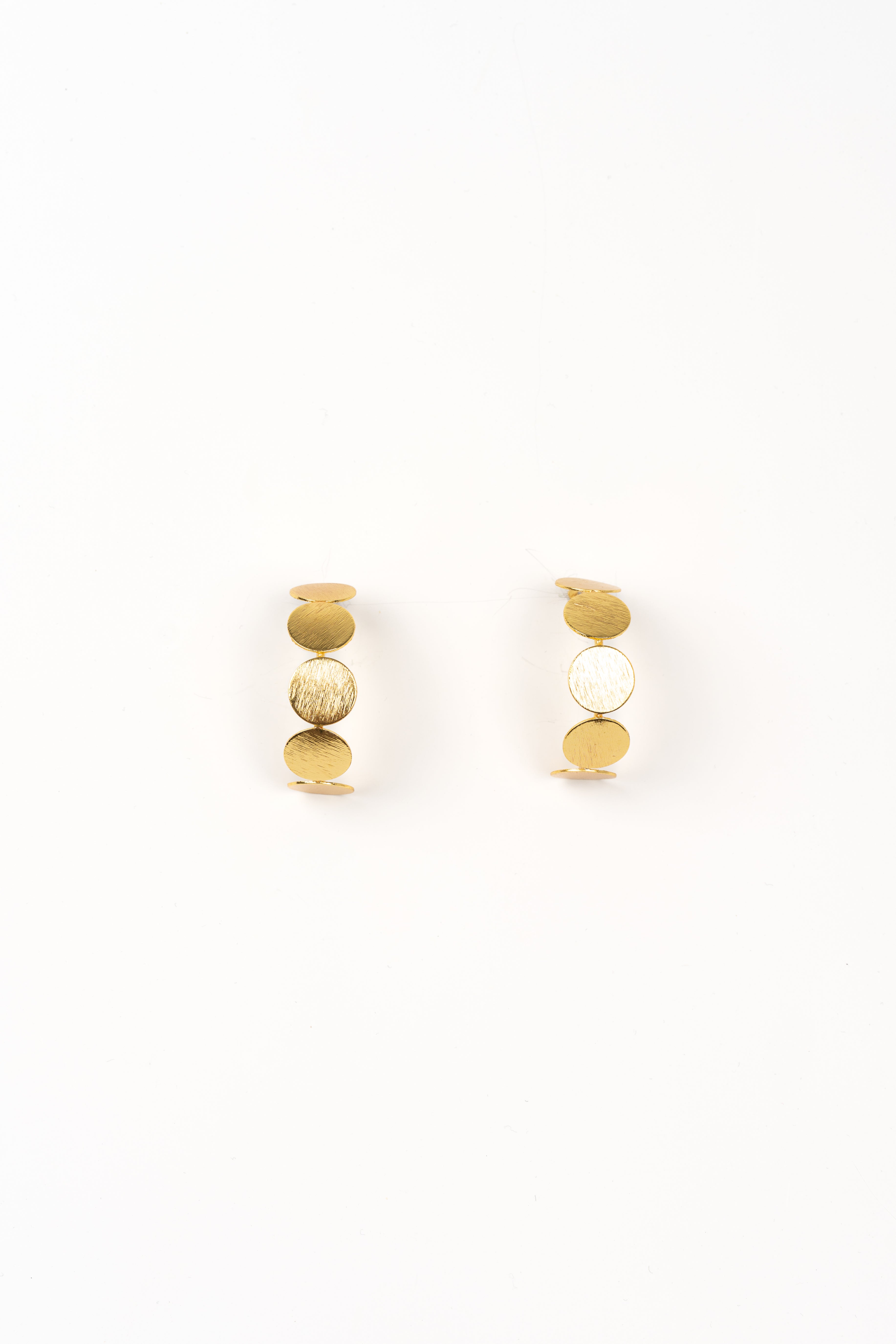 Aros de acero inoxidable dorado formado por discos texturizados articulados.