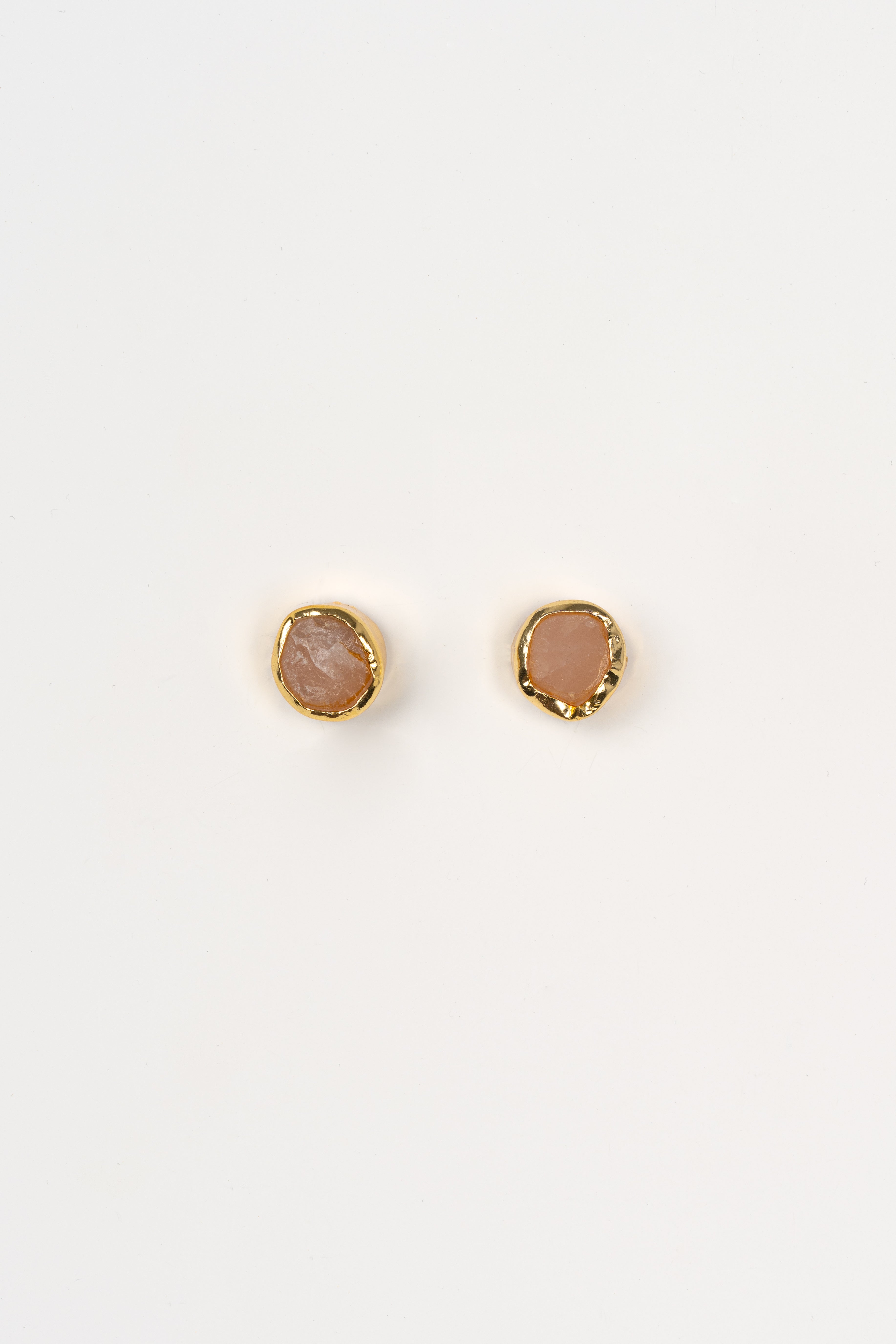 Pendientes de acero inoxidable dorado con piedra rosa en bruto.